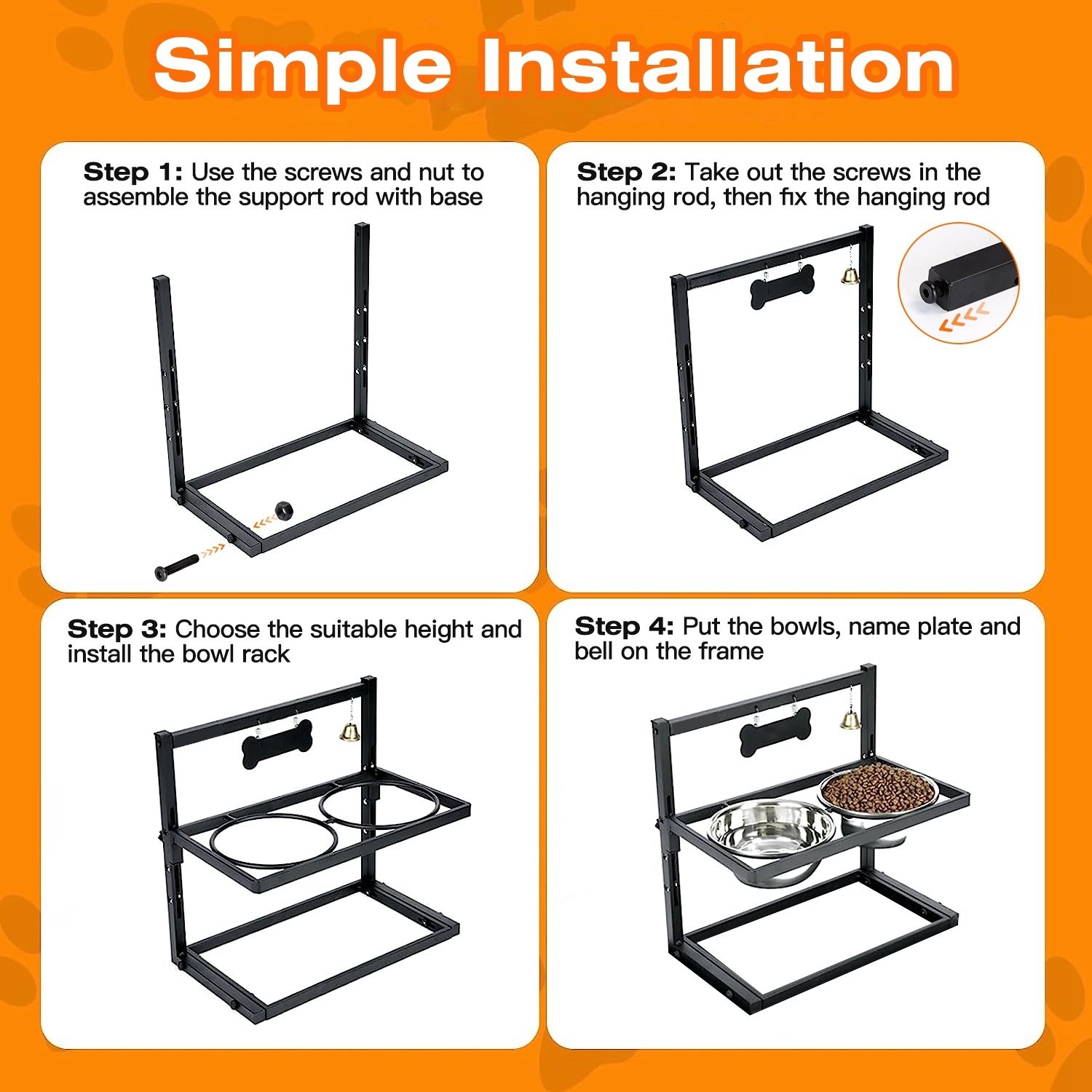 *Easy To Use & Clean*:No tools required,with delicate guide manual and complete accessories,you can quickly assemble this raised dog bowl in about 5 minutes. Detachable bowls are easy to clean,support hand washing and dishwasher.
