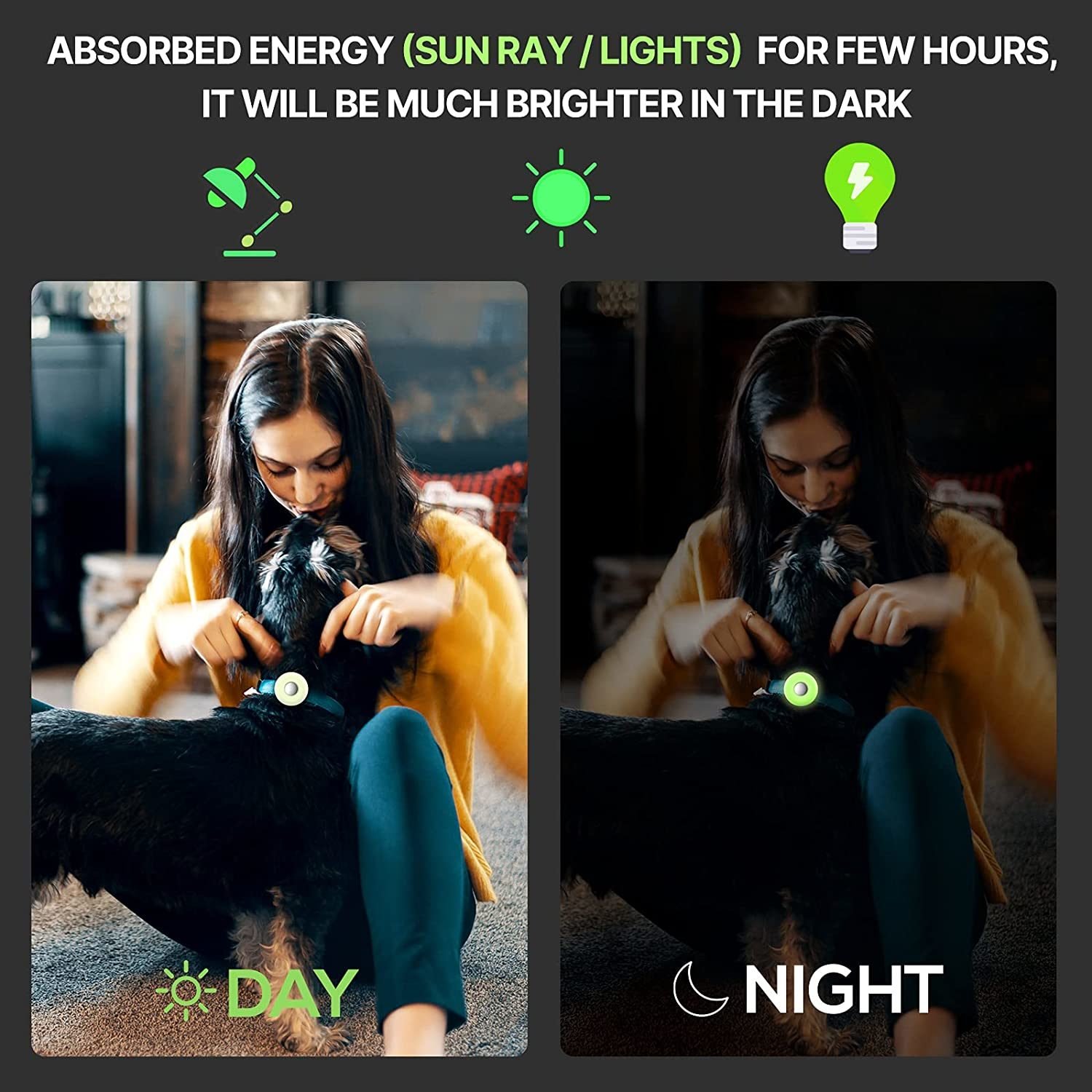 Absorbed Energy (Sun Ray / Lights) for few hours; it will be much brighter in the dark.
