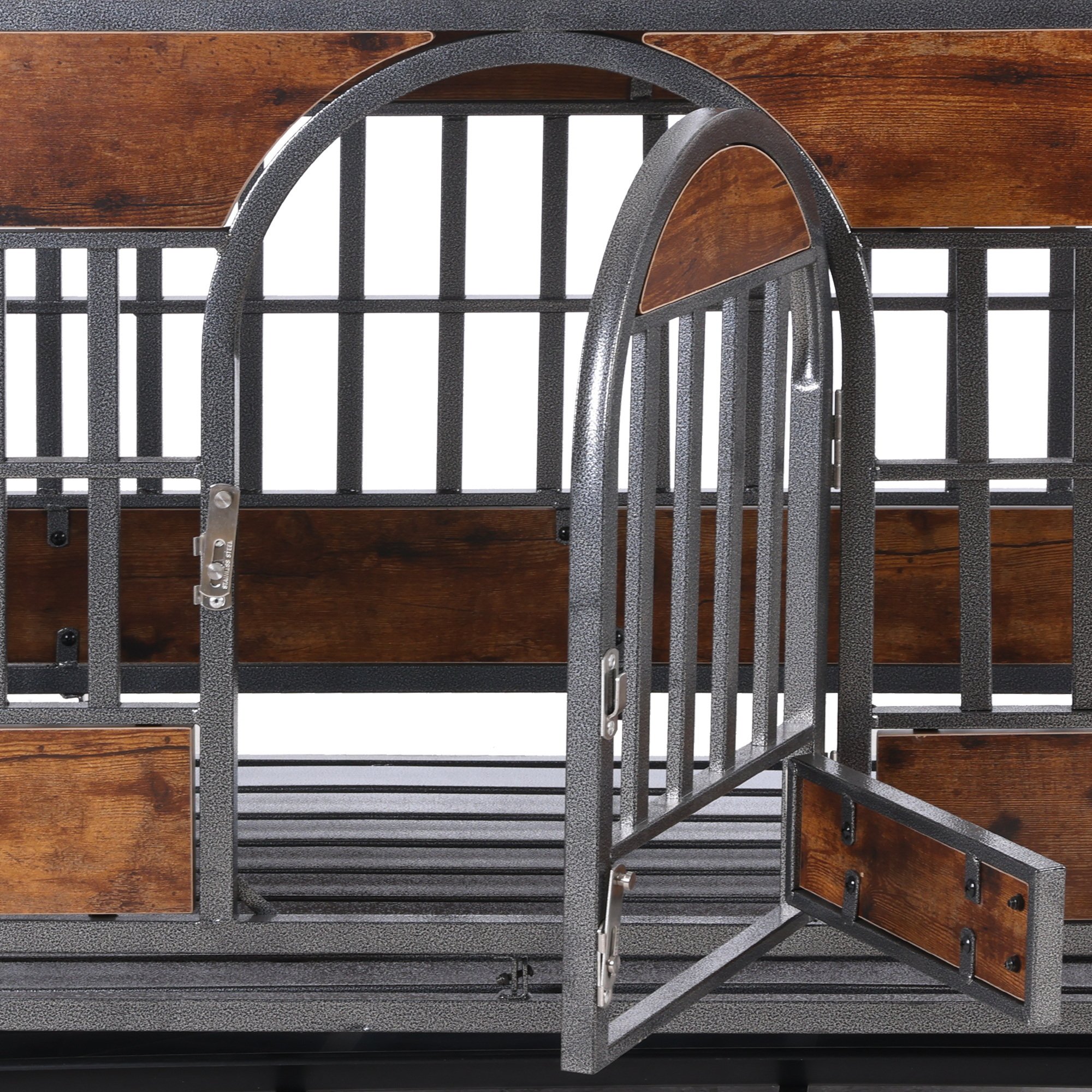 Enhanced Safety Features: Non-toxic coating with a secure sliding bolt latch on the door and a small feeding door to ensure pet safety and prevent escapes.