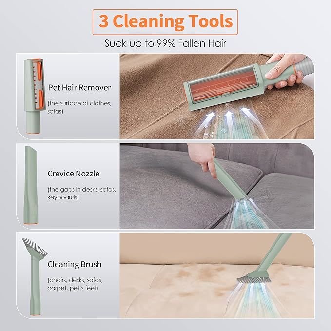 • 【Suck up to 99% fallen hair】 3 cleaning tools could collect fallen pet hair from carpets, sofas, and floors with the crevice nozzle and cleaning brush. The removal brush easily removes pet hair from clothing and blankets. Comes with 24 month's warranty. If you have any questions, please do not hesitate to contact us
