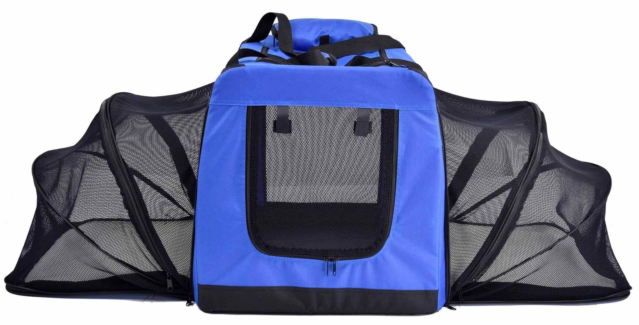 1.Features Dual-Sided Completely Expandable Accordion-Like Crate for Triple- Internal Lounging Area, Users can choose to open 1 or 2 sides. Simply Zips and Opens with Built-In Removable Pads on each sidewall. Allows for plenty of Sunlight with moonroof and Side-View Entrances.